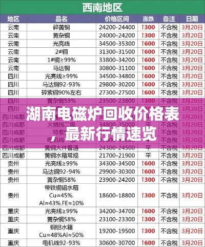 随着科技的快速发展,电磁炉已成为现代家庭厨房的必备之物,而在湖南地区,由于消费市场的不断扩大,电磁炉的回收市场也逐渐兴起,本文将为您呈现湖南地区最新的电磁炉回收价格表,以帮助您了解市场行情,做出明智的决策。