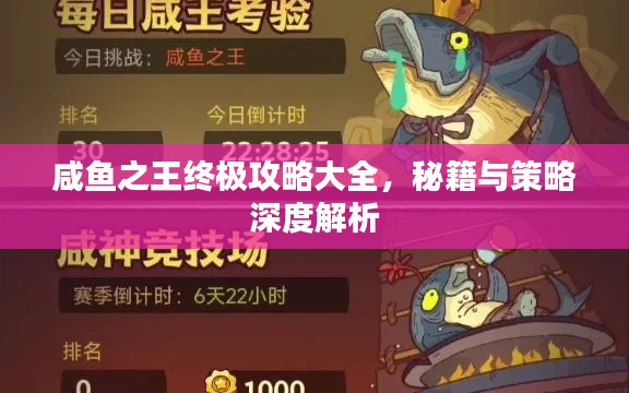 《咸鱼之王》这款游戏以其独特的玩法和丰富的游戏内容吸引了众多玩家,本文将为大家带来咸鱼之王的最新终极攻略,帮助玩家更好地掌握游戏技巧,提升战斗力,成为真正的咸鱼之王。