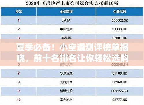 随着夏季的到来,小空调作为一种便捷、高效的降温设备,在市场上受到广大消费者的欢迎,本文将为大家介绍小空调测评前十名排名,以帮助您更好地了解市场上的产品,为您的购买决策提供有力依据。