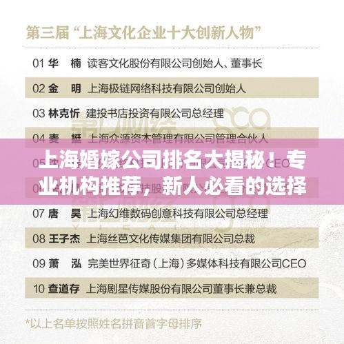 上海婚嫁公司排名大揭秘!专业机构推荐,新人必看的选择指南!