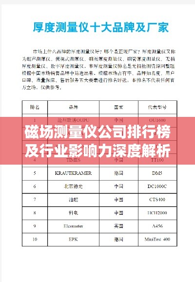 磁场测量仪是现代科技领域不可或缺的重要设备,广泛应用于物理研究、航空航天、地质勘测等领域,随着技术的不断进步,磁场测量仪的市场竞争日益激烈,各大公司的表现备受关注,本文将探讨磁场测量仪公司的排名及其行业影响力。