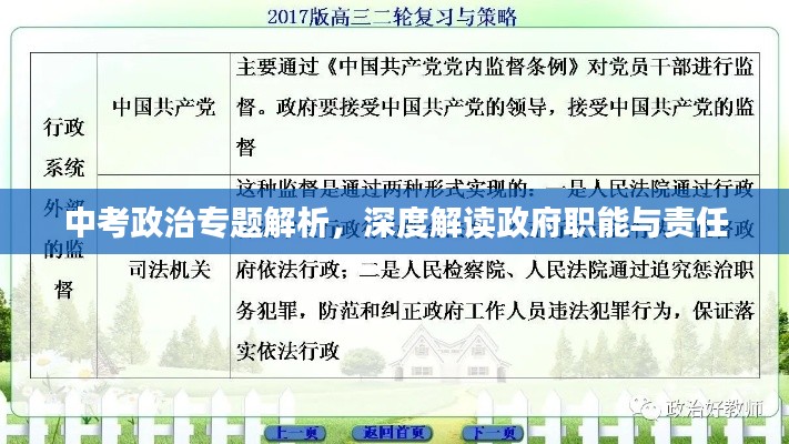 中考政治作为考察学生综合素质的重要科目之一,涵盖了广泛的内容,其中政府专题是重要的一部分,本文旨在深入探讨中考政治政府专题的相关内容,帮助学生更好地理解和掌握相关知识。