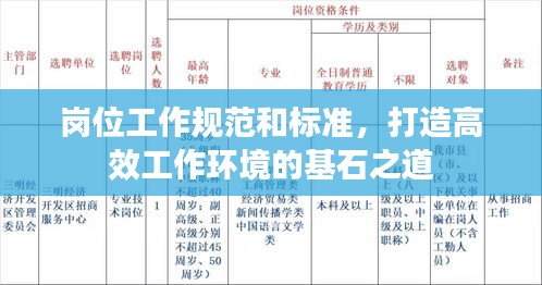 岗位工作规范和标准是打造高效工作环境的基石,企业应结合自身实际情况,制定完善的岗位工作规范和标准,并通过培训、执行、激励和监督等策略确保其有效实施,只有这样,才能提高员工的工作效率和质量,促进企业的可持续发展。