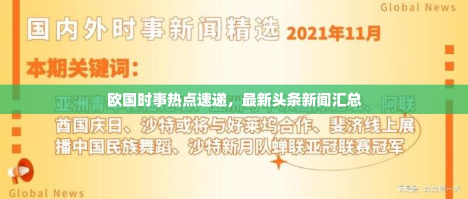 欧洲各国新闻动态一直是全球关注的焦点之一,本文将为您带来最新的欧洲各国新闻头条,涵盖政治、经济、社会和文化等多个领域。