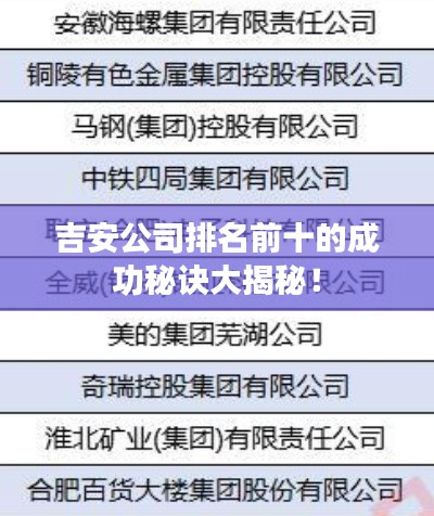 吉安公司排名前十的成功秘诀大揭秘!