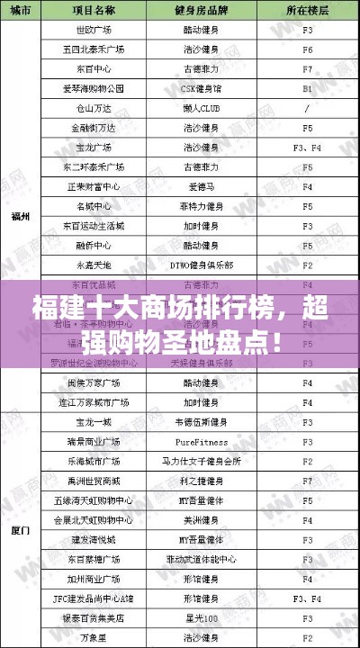 福建省,以其深厚的历史文化底蕴和繁荣的商贸活动著称,在这片土地上,商场如雨后春笋般涌现,各具特色,充满活力,本文为您介绍福建最强的商场排名前十名,让您了解这些商业地标的魅力所在。