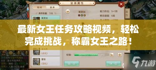 随着游戏的日益发展,各类游戏攻略视频应运而生,对于热衷于挑战“女王任务”一篇详尽的攻略视频指南无疑是宝贵的资源,本文将为你介绍最新女王任务攻略视频,助你轻松完成女王挑战,提升游戏体验。