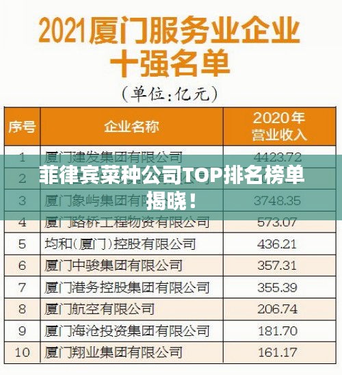 菲律宾是一个充满活力和多元文化的国家,其农业产业也蓬勃发展,随着农业技术的不断进步和市场的需求增长,菲律宾的菜种公司逐渐崭露头角,本文将为您介绍菲律宾菜种公司的排名,带您了解这些在农业领域取得显著成就的企业。