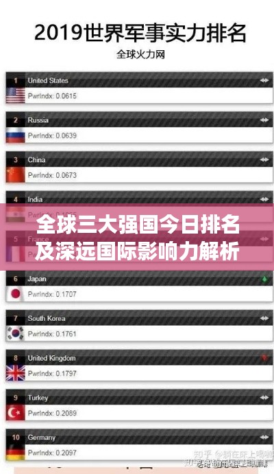 在全球化的时代背景下,各国间的竞争日益激烈,而一个国家的综合实力往往体现在其经济、军事、科技、文化等多个方面,今天世界三大强国的排名是怎样的呢?本文将从多个角度进行阐述。