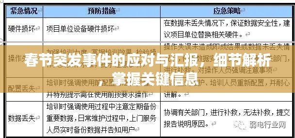 随着春节的临近,人们纷纷踏上回家的路,喜庆的气氛弥漫在大街小巷,突发事件在春节期间也可能发生,给节日氛围带来一定的影响,为了及时应对和解决这些突发事件,本报告将针对春节期间发生的几起突发事件进行汇报和总结。