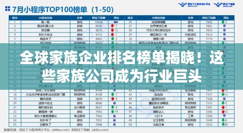 随着全球经济的蓬勃发展,家族企业在世界各地崭露头角,凭借其独特的经营模式和卓越的业绩,赢得了全球的关注与尊重,我们将一起探讨全球范围内家族公司的排名情况。
