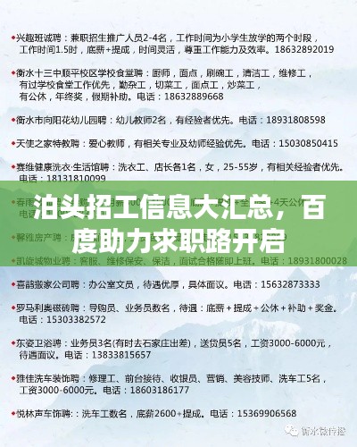 随着经济的不断发展和进步,越来越多的人开始寻找新的就业机会,泊头作为一个重要的城市,其经济发展吸引了众多求职者前来寻找工作机会,本文将结合百度搜索,为您梳理泊头的招工信息,帮助您更好地了解当地的就业市场,找到适合自己的工作机会。