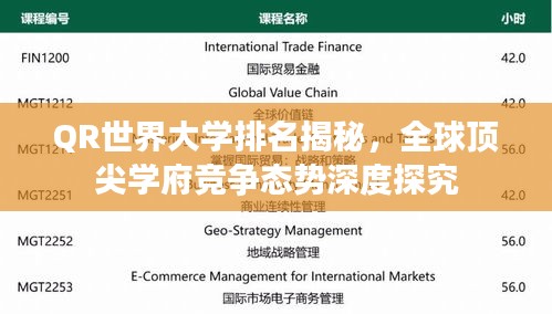 随着全球化的推进,教育领域的竞争也日益激烈,世界大学排名,尤其是基于QR(Quality Research)标准的排名,已成为评估全球高等教育质量的重要指标之一,本文将深入探讨QR世界大学排名背后的意义、影响因素以及全球顶尖学府的竞争态势。