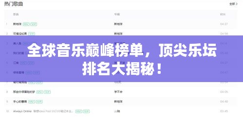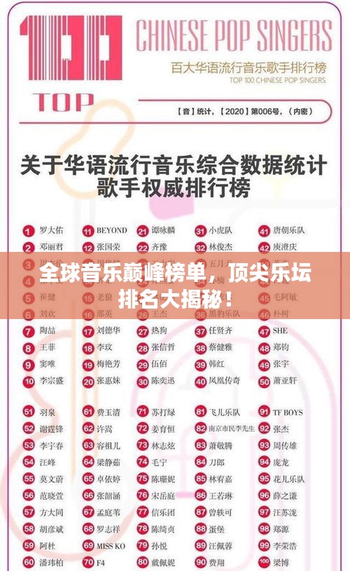 音乐是一种跨越国界、沟通人心的艺术形式,在全球范围内,总有一些音乐人和乐队以其卓越的才华和独特的风格,赢得了世界各地乐迷的喜爱和尊敬,在世界乐坛中,哪些音乐人、乐队或音乐作品能够跻身排名呢?我们将一起探讨世界乐坛的排名。