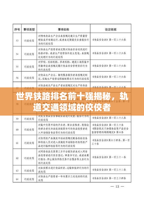 随着全球经济的迅猛发展和城市化进程的加快,铁路作为重要的交通工具,在全球范围内得到了广泛的关注与大力发展,本文将为您揭示世界铁路排名前十强的国家,这些国家在轨道交通领域取得了显著的成就,为全球铁路事业的发展做出了杰出贡献。