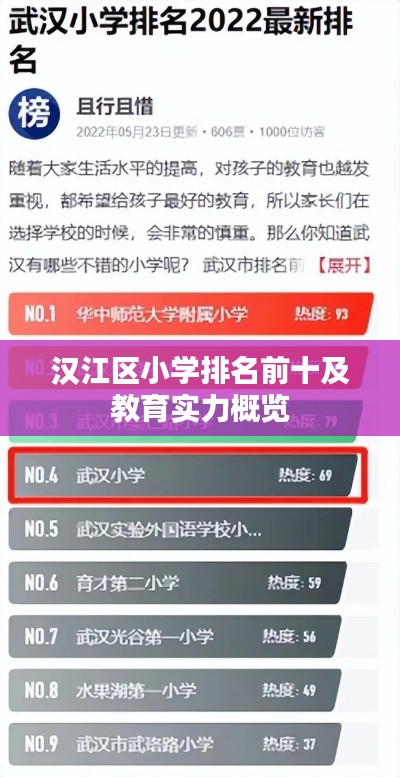 汉江区小学排名前十及教育实力概览