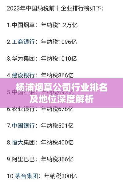 随着烟草行业的快速发展,各大烟草公司的竞争也日益激烈,杨浦烟草公司作为业内的佼佼者,其排名及行业地位备受关注,本文将深入探讨杨浦烟草公司的排名及其在行业中的地位。