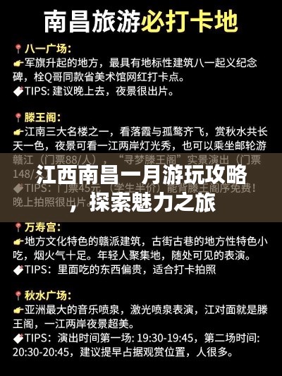南昌,这座历史悠久的城市,在冬季展现出了别样的魅力,一月份,正值冬季的南昌,虽然寒冷,但有着独特的旅游体验,本文将为你提供一份详尽的江西南昌一月旅游攻略,帮助你更好地规划行程,感受南昌的独特风情。