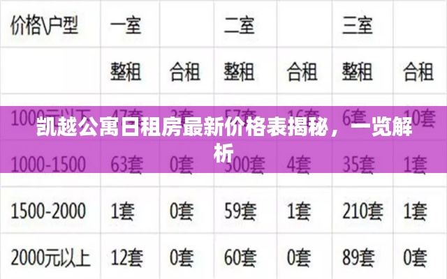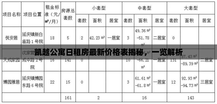 随着旅游业的繁荣和商务活动的频繁,短租公寓的需求日益增加,凯越公寓以其优越的地理位置、舒适的居住环境和优质的服务赢得了广大租客的青睐,本文将对凯越公寓最新的日租房价格表进行解读,帮助您在寻找短期住宿时做出明智的选择。