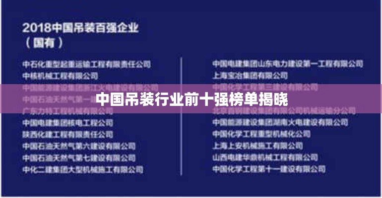 是中国吊装排名前十名的企业,它们在吊装领域拥有先进的设备和技术,以及专业的团队和多年的经验,这些企业代表了我国吊装行业的最高水平,为我国的建设和发展做出了重要的贡献,随着技术的不断发展和市场的不断变化,这些企业将继续发挥重要作用,为我国的建设和发展提供更加优质的服务。