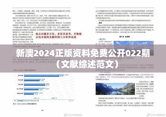 本期的新澳2024正版资料免费公开022期(文献综述范文)是一部收录和分析当前研究动态与成果的文献综述,旨在为读者提供相关领域的研究状态和未来发展方向。文献综述内容涵盖了多个学科领域,每篇综述都汇总了特定研究领域的最新进展、关键问题以及发展方向等重要信息。