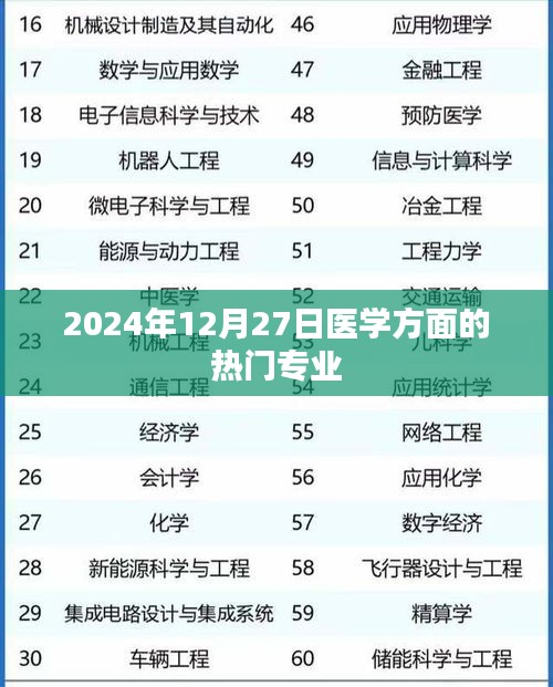 随着医学领域的不断发展和人口结构的变化,医学专业的热门趋势也在不断变化,到了2024年,随着科技进步和医疗需求的增长,一些医学专业领域将变得更加炙手可热,本文将探讨在不久的将来,也就是在2024年12月27日,医学领域的热门专业有哪些,并简要介绍它们的前景和发展趋势。