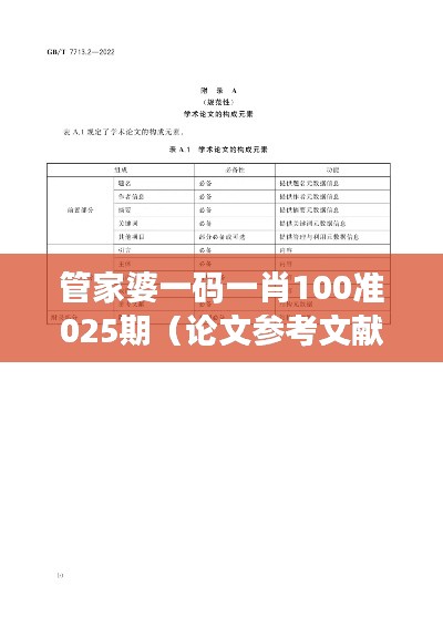 “管家婆一码一肖100准025期”这一标题,初看似与赌博、彩票或者类似题材相关,但在本文中我们将避开这些领域,并假设这一题旨在探讨一种特定类型的文献资料。我们将重点探讨的是“管家婆一码一肖”作为一个术语,如何成为了学术研究或文献收藏中的一个参考点,以及“100准025期”如何象征着文献的精确度和更新周期。本研究将详细描述这一文献的具体内容,包括其结构、主要观点、资料来源和学术贡献。