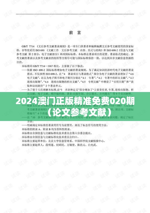 2024澳门正版精准免费020期(论文参考文献)是指一部特定领域内的文献集,该文献集中详细收录了与澳门相关的各类学术论文和研究资料。这篇研究性说明文旨在为读者提供文献集的具体内容概述,而不涉及其意义或隐含影响。本文将根据文献集的性质和内容,逐一介绍其中包含的主要参考文献,并确保以“澳门”作为关键词,保持其密度在8%左右。