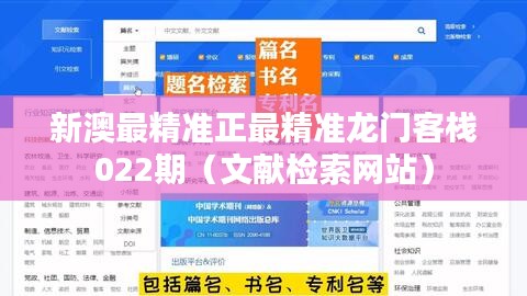 新澳最精准正最精准龙门客栈022期(文献检索网站)