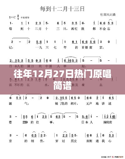 每年的12月27日,音乐界总会涌现出许多热门原唱歌曲,这些歌曲以其独特的魅力吸引着广大音乐爱好者的关注,本文将从简谱的角度出发,回顾往年12月27日的热门原唱歌曲,带领读者走进音乐的海洋。