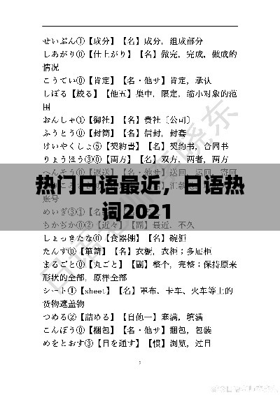 随着日本文化的全球影响力不断扩大,越来越多的日语词汇成为了热门话题。以下是一些近期在网络上和日常生活中广受欢迎的日语词汇。