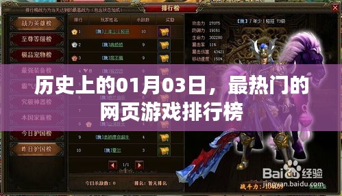 随着科技的飞速发展,网页游戏已成为许多人休闲娱乐的首选,在这篇文章中,我们将聚焦于历史上的1月3日,回顾那一天最受玩家欢迎的网页游戏排行榜,这些游戏各具特色,有的以其独特的玩法吸引玩家,有的则凭借丰富的故事情节和精美的画面赢得了众多粉丝。