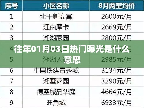 “往年01月03日热门曝光”通常指的是在某一特定日期,即每年的1月3日,发生的一些引人关注的事件或新闻,这些事件或新闻在当时的网络环境中迅速传播,成为公众热议的话题,这种曝光可能是由多种因素引起的,如节假日、重大事件、突发事件等。