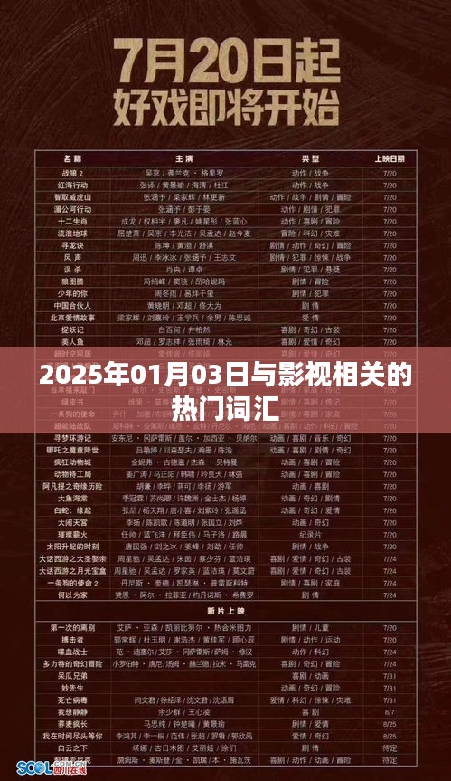 随着时代的发展,影视行业日新月异,新的词汇不断涌现,本文将为您介绍在XXXX年XX月XX日,与影视相关的热门词汇及其背后的含义和影响力,这些词汇反映了影视行业的最新动态和趋势,让我们共同了解这些词汇背后的故事。