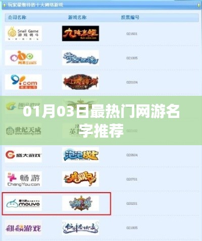 随着科技的快速发展,网络游戏已成为许多人休闲娱乐的首选,在众多的网游中,选择一个既有趣又独特的名字,不仅能展示你的个性,还能让你在游戏中结交更多的朋友,本文将为你推荐一些2023年1月3日最热门的网游名字,希望能够帮助你找到心仪的游戏角色名。