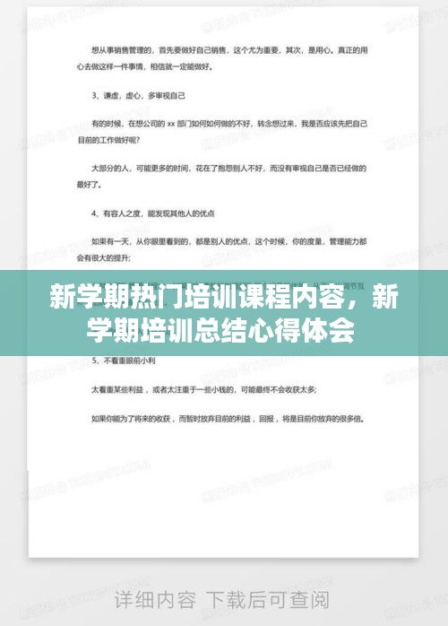新学期的热门培训课程涵盖了多个领域,旨在帮助学生和职场人士提升自身技能,适应不断变化的市场需求。选择适合自己的课程,不断学习和进步,将为未来的职业发展打下坚实的基础。