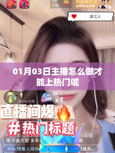 随着互联网的普及和社交媒体的飞速发展,直播行业成为了热门行业之一,越来越多的人加入到主播的行列,希望在激烈的竞争中脱颖而出,上热门,在01月03日这一天,主播们应该如何做才能吸引更多关注,成功登上热门呢?