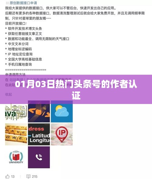 随着互联网的快速发展,社交媒体的影响力日益增强,头条号作为重要的自媒体平台之一,吸引了众多创作者的加入,为了在海量内容中脱颖而出,作者认证成为了头条号发展的重要里程碑,本文将对01月03日热门头条号的作者认证进行解读,探讨其背后的意义及对创作者的影响。