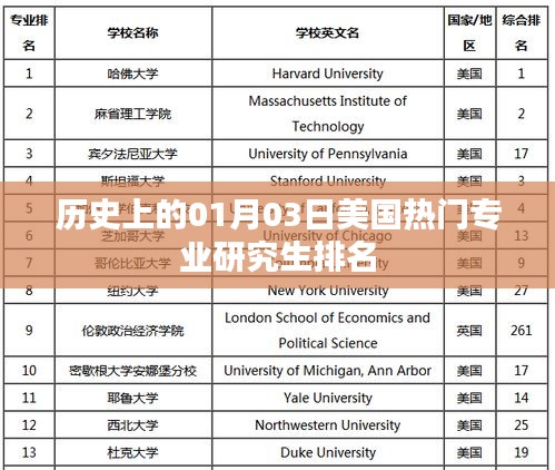 时光荏苒,岁月如梭,在历史的每一天,美国的教育界都孕育出了无数杰出的专业人才,本文将聚焦于历史上的01月03日,回顾这一天美国研究生教育的辉煌历程,并探讨当时热门专业的排名情况。