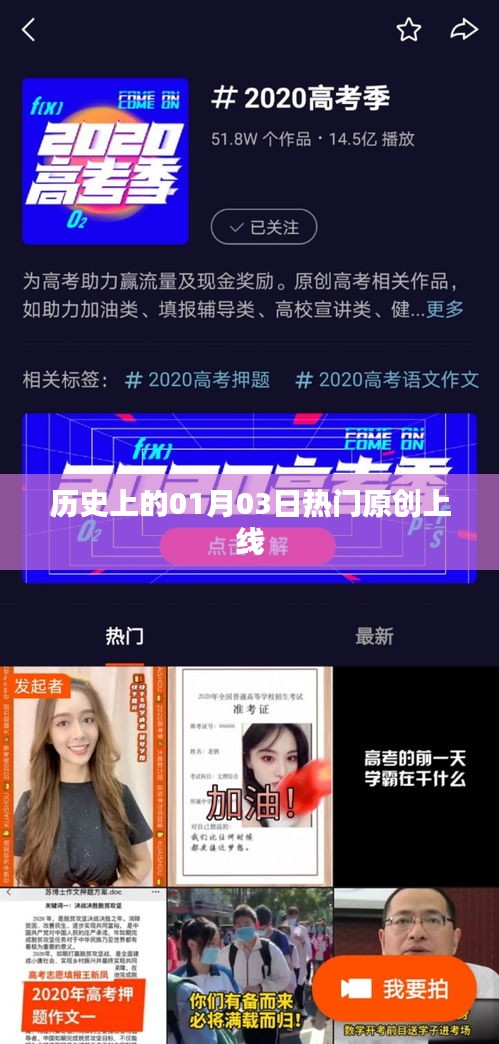 历史上的01月03日是一个值得纪念的日子,这一天,不仅发生了许多重要事件,也有一些优秀的原创作品上线,这些原创作品的诞生,标志着时代的进步和文化的发展,希望通过本文的回顾,能让更多人了解这一天的历史背景和热门原创作品,共同见证文化的繁荣与发展。