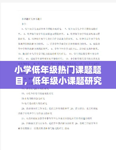 语言是沟通的工具,文学是情感的载体。在小学低年级,以下是一些热门课题题目: