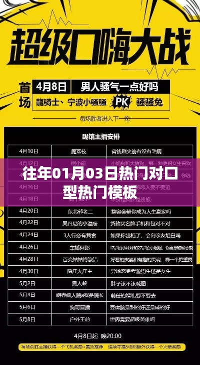 随着互联网的普及和社交媒体的兴起,每年的热门话题都在不断变化,本文将围绕“往年01月03日热门对口型热门模板”这一主题,探讨当时的社会热点、流行趋势以及人们关注的焦点,同时分析这些话题背后的原因和影响。