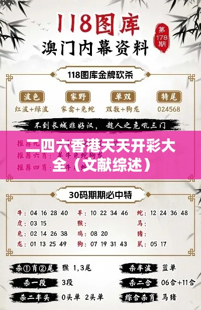 “二四六香港天天开彩大全”这个主题乍一看似乎与彩票相关,但实际上,这是一种误解。这里的“开彩”实际上是指香港地区历史上的一项独特文化活动,它与赌博无涉,而是反映了地区社会生活的一部分。本文献综述旨在揭示这一历史文化遗产的本质,通过研究香港历史上的公共生活、文化习俗和民间活动,来探讨“二四六香港天天开彩”的深层含义。