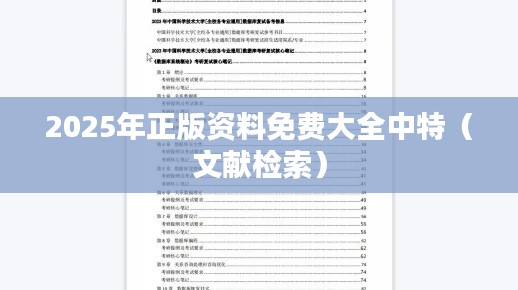 随着互联网技术的飞速进步和数字化趋势的不断加强,获取各类正版资料与文献资料已变得愈发便捷和重要。2025年正版资料免费大全中特(文献检索)旨在提供一个全方位的平台,让用户能够方便快捷地检索和利用各类正规出版的文献资源。本文将详细阐述2025年正版资料免费大全中特(文献检索)的具体内容,为用户提供一个清晰的宏观视角。