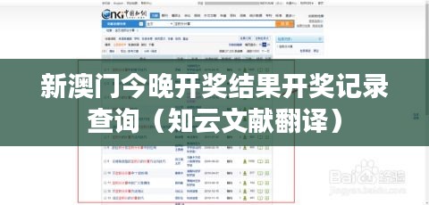 “新澳门今晚开奖结果开奖记录查询(知云文献翻译)”是指通过对文献资料的研究和翻译,了解新澳门地区某一特定领域的历史和文化现象。在这篇研究性说明文中,我们将深入探索和分析文献本身的具体内容,而非其含义或隐喻。由于这一研究很可能涉及到多个领域,例如历史、艺术、文化或者经济等,我们将重点放在文献的内容呈现和翻译准确性上。本研究不涉及任何与赌博或彩票相关的内容,以确保研究的客观性和科学性。