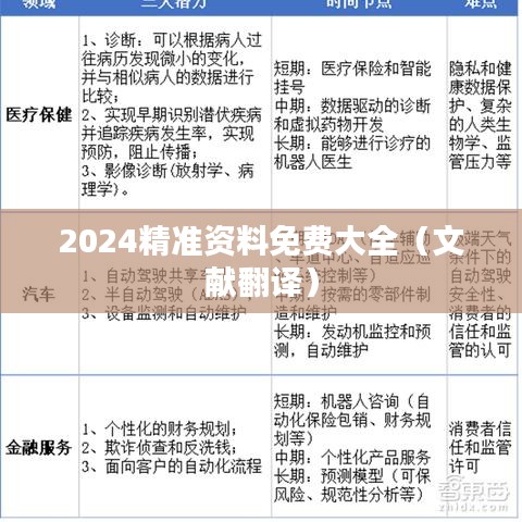 "2024精准资料免费大全(文献翻译)“是一份综合整理了各个领域最新研究成果的文献资料集,旨在为读者提供一个免费的知识和信息平台。本文详细介绍了该资料大全中的各类文献资料,包括但不限于科学、技术、人文社科、艺术等领域的高质量文献。每一篇文献均经过精心筛选和翻译,保证了内容的准确性和可靠性。