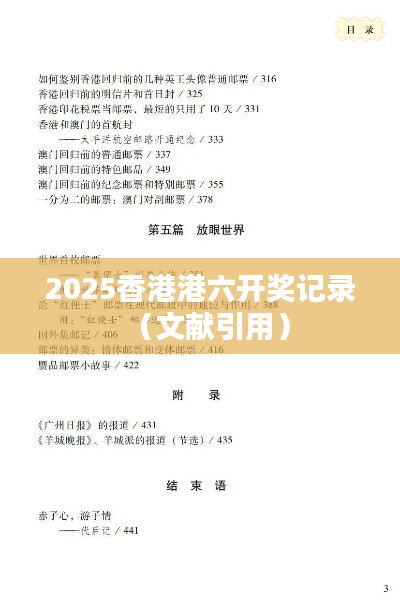 "2025香港港六开奖记录(文献引用)"作为一个特定的研究题目,要求深入探讨并呈现与香港地区港六相关的各类开奖记录的文献资源。本文将详细梳理这些文献收录的情况,以便对香港港六相关活动有一个全面且系统的了解。需要注意的是,本研究不涉及赌博或彩票内容,旨在为学者和研究人员提供一个纯粹的学术交流平台。