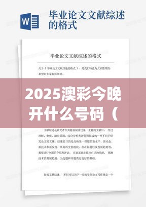本文旨在对“2025澳彩今晚开什么号码(文献综述模板)”这一话题进行文献综述。在此过程中,我们将详细考察相关文献中的具体内容,而不涉及文献的深层含义或其在特定领域的影响。需要注意的是,此主题与赌博或彩票无关,而是专注于文献资料的系统性研究和分析。