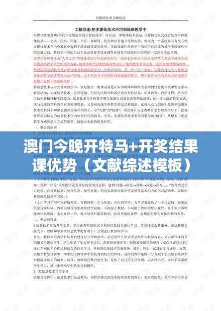 本文旨在综述有关“澳门今晚开特马+开奖结果课优势”的文献资料,探讨其在学术研究和实际应用中的特点与价值。本文将详细介绍相关文献的具体内容,包括研究背景、研究方法、主要发现以及结论。需要注意的是,本文讨论的内容不涉及任何形式的赌博或彩票活动,而是聚焦于学术研究层面的探讨。