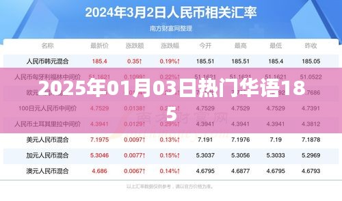 随着时代的变迁,华语音乐不断发展壮大,成为全球流行音乐的重要组成部分,在2025年的一月三日,一场盛大的音乐盛会在全球范围内引起了广泛关注,其中热门华语歌曲更是成为了人们瞩目的焦点,本文将介绍这一天的热门华语歌曲之一——《185》。